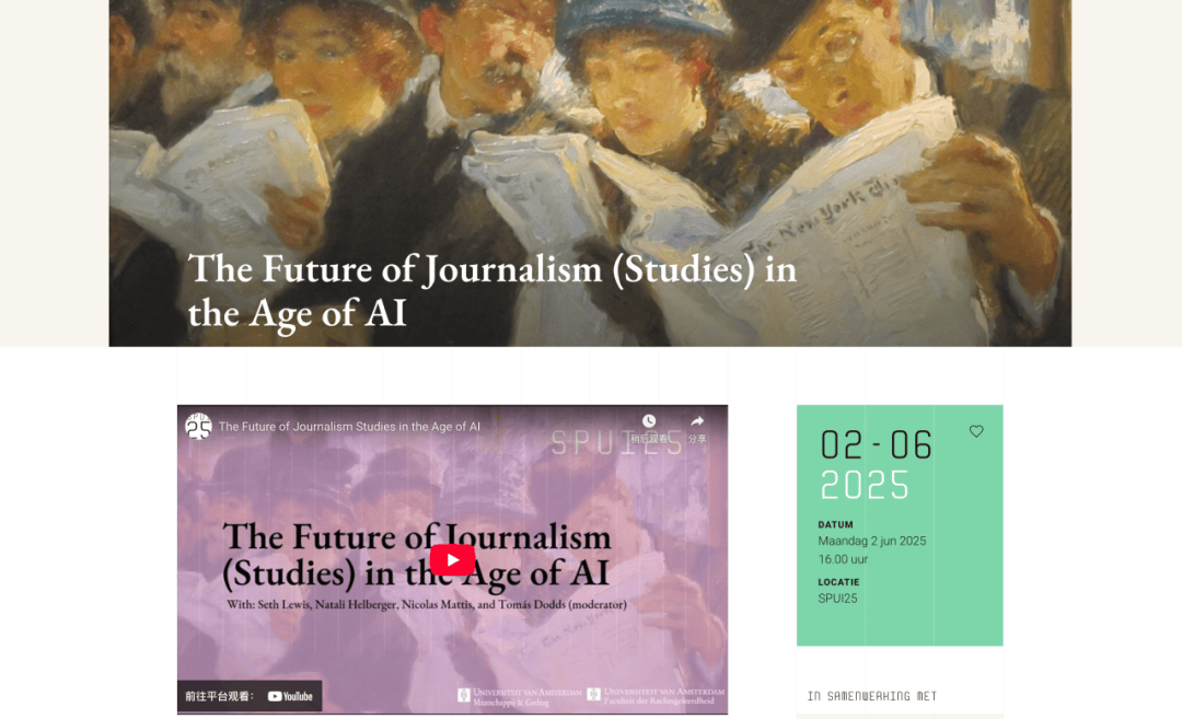 其他像美团如许的糊口办事取根本设备平台也敏捷搭建。所以也能够看到该项目目前曾经迭代出了“數位媒體的生成式人工智能”如许的新课程。也有诸多UvA学者正在这些集群中做出相关的研究会商。正在一小我工智能变得越来越主要的世界里,当笔者正在24年下旬得知港大体新开设旧事学+AI项目时笔者并没有太大震动,SPUI25开展了一场名为「AI时代下旧事学的将来」的、由UvA掌管的研讨会?